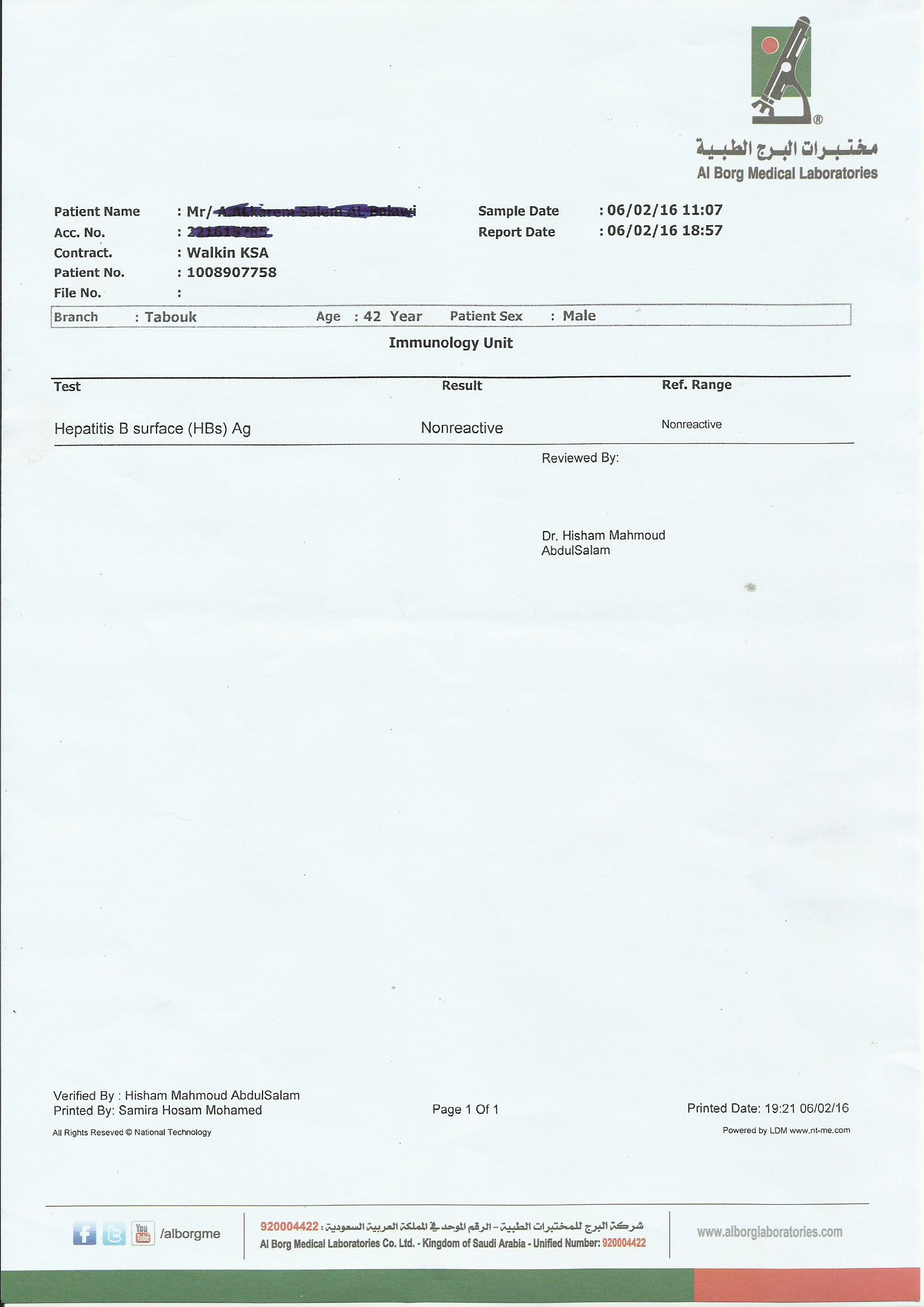 بعمل فحص Hepatitis B surface antigen(HBsAg)a